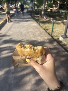 Mientras visitaba las ruinas de Tulúm habia una señora que vendía estas tortas con chicharrones. Me encantaron,era como un bollo de pan cerrado y dentro los torreznos.