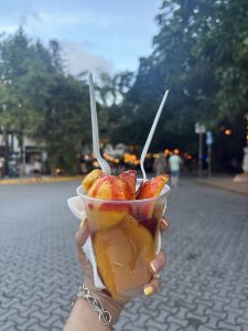 El mango del Caribe está buenísimo. Te daban la opción de añadir la salsa tamarindo que es un poco ácida y chili para darle un toque picante. Me encantó la fusión de sabores, era adictivo.